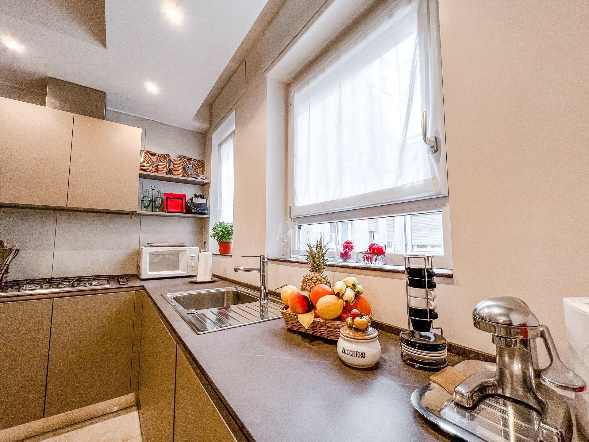 Cucina a gas completamente attrezzata con tutte le stoviglie necessarie.